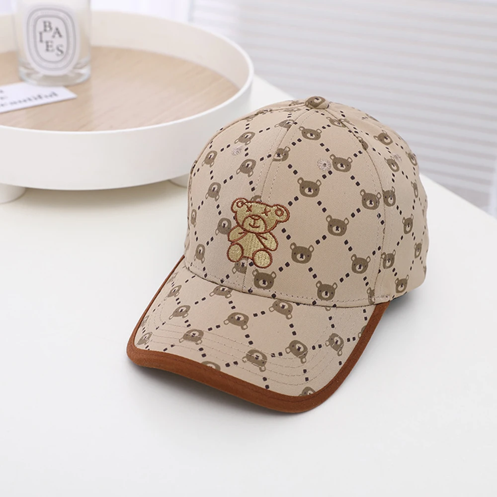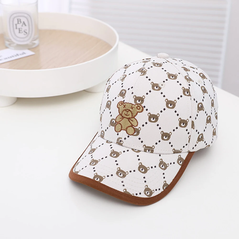 Estampa Adorável: O boné é coberto por uma charmosa estampa corrida de mini cabeças de ursinho e um padrão quadriculado, super moderna e unissex.