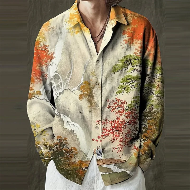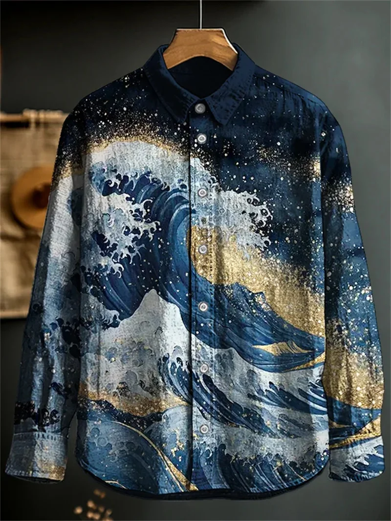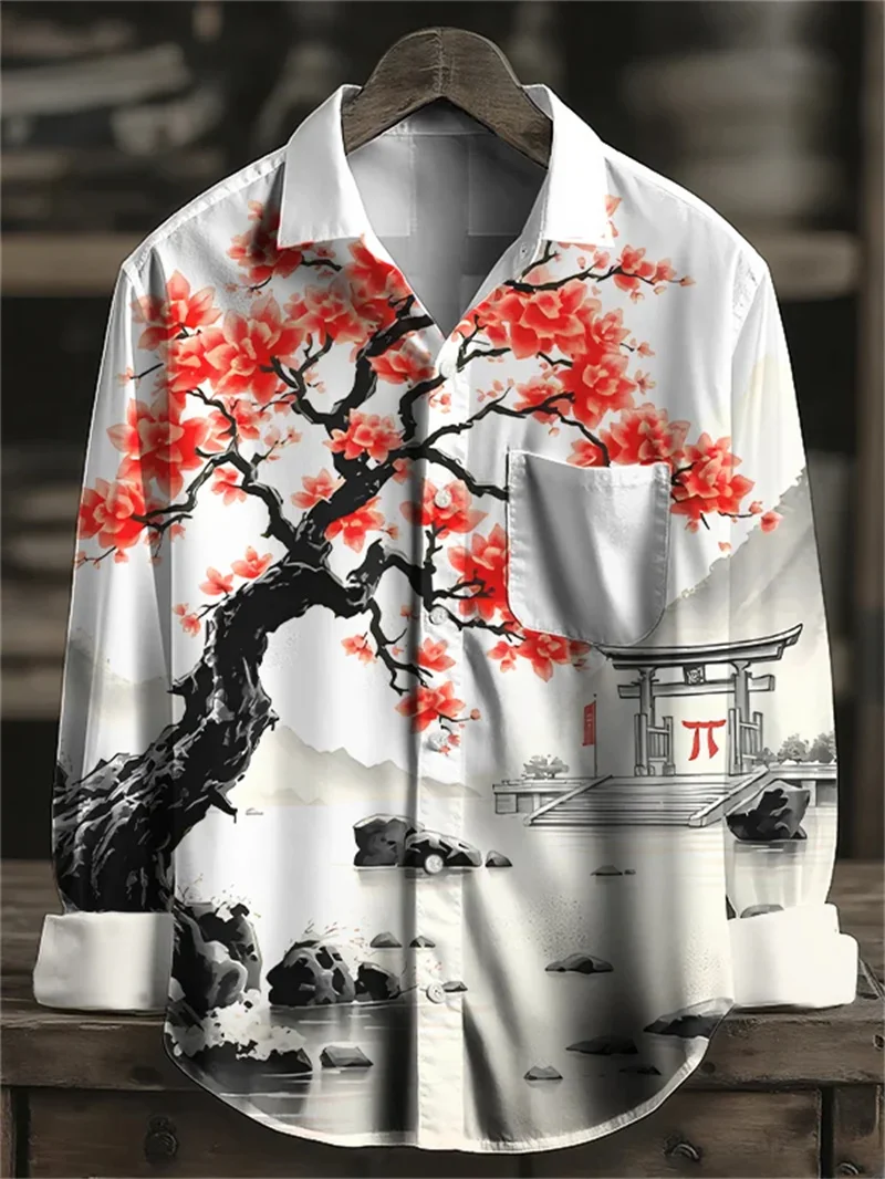 Camisa Masculina Estampada Assimétrica 'Leão Oriental' – Arte, Cultura e Estilo Único! 🐉🎨