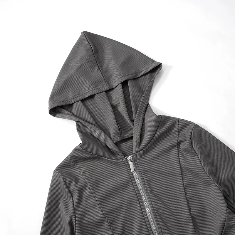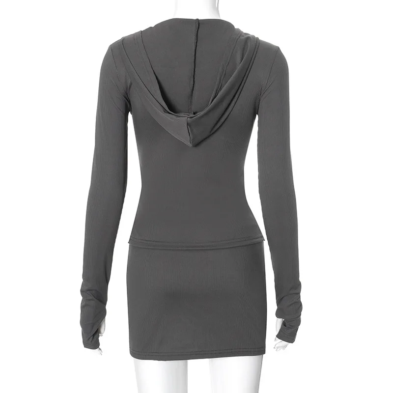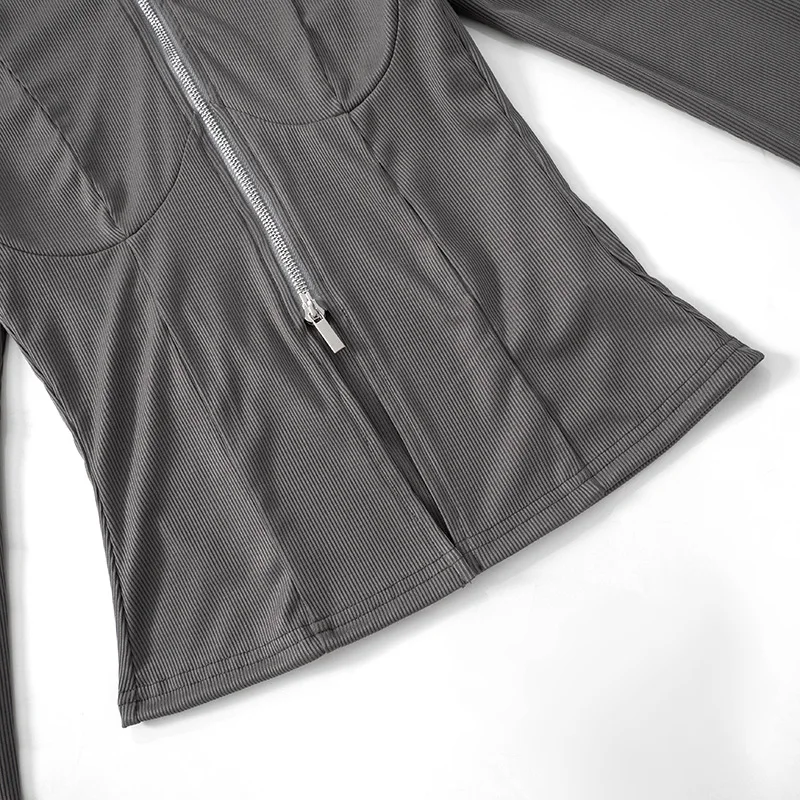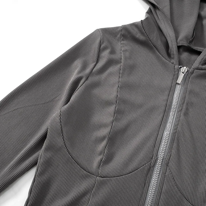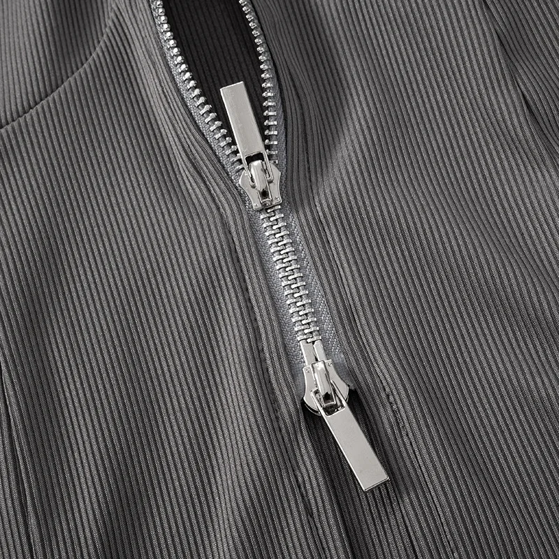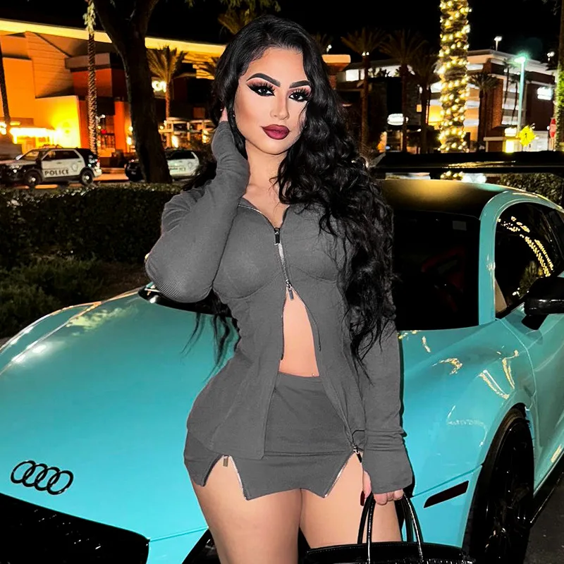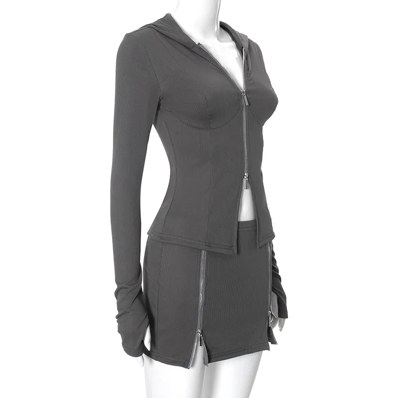 Nome Original/Estilo: Ribbed Zip-Up Cropped Jacket & Mini Skirt Set / Urban Chic Co-ord.