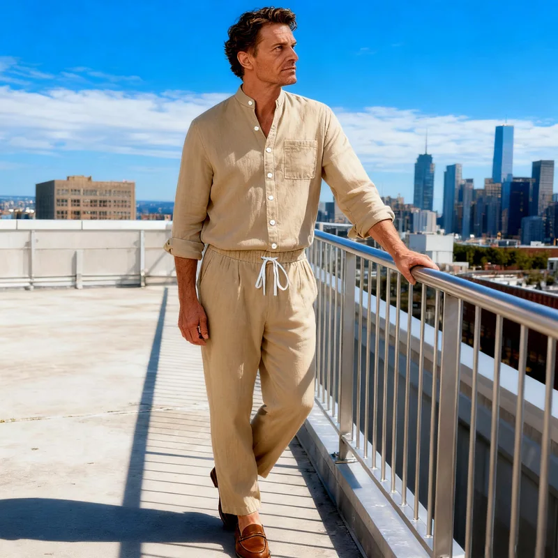 Abra espaço no seu guarda-roupa para a sofisticação leve e o conforto atemporal do linho. Nosso Conjunto Linen Resort é a definição do casual chic, perfeito para um visual descontraído, mas extremamente elegante, em qualquer cenário de clima quente.