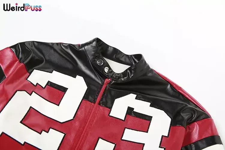 Estilo Racing/Motociclista: Inspirada nas jaquetas de corrida, ela possui blocos de cores vibrantes e números (como o 23) em destaque na frente.