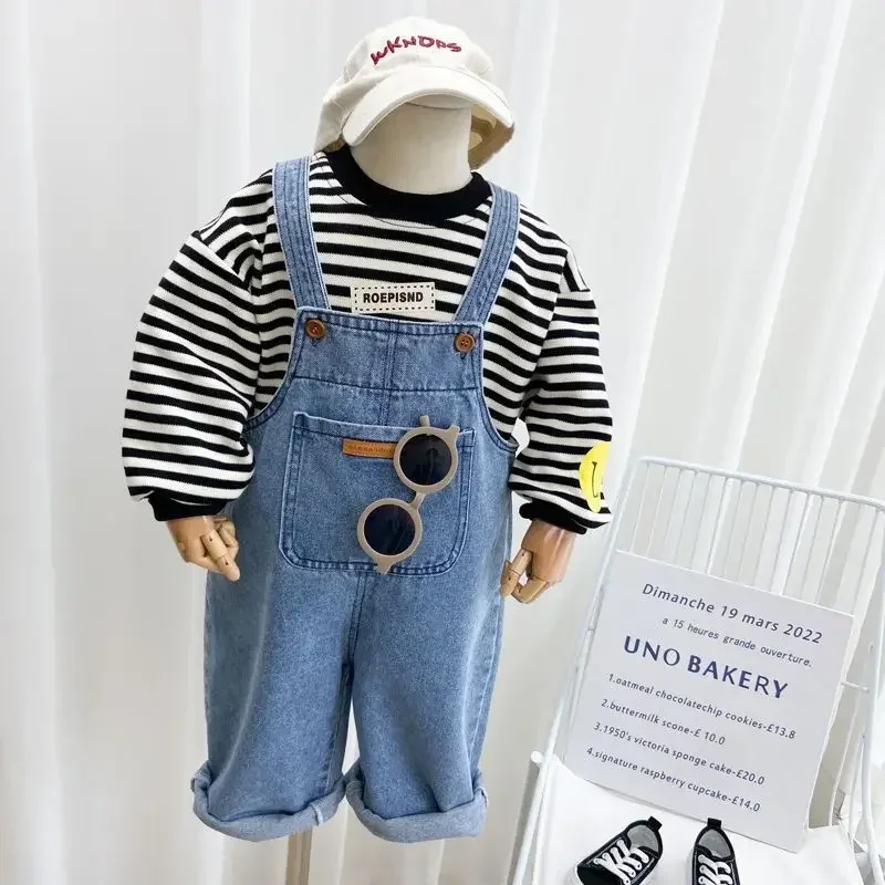 Apresentamos o Macacão Jardineira "Aventureiro Denim", a peça mais charmosa e versátil do guarda-roupa infantil. Combinando a resistência do jeans com uma modelagem soltinha e confortável, esta jardineira é ideal para acompanhar todas as brincadeiras e descobertas, mantendo o estilo clássico e vintage. É um item essencial para criar looks descolados para meninos e meninas.