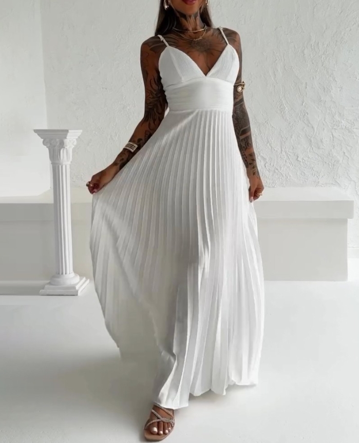 Outras Opções: Vestido Maxi Plissé, Vestido Longo Decote V Plissado, Vestido Alça Fina Plissado.