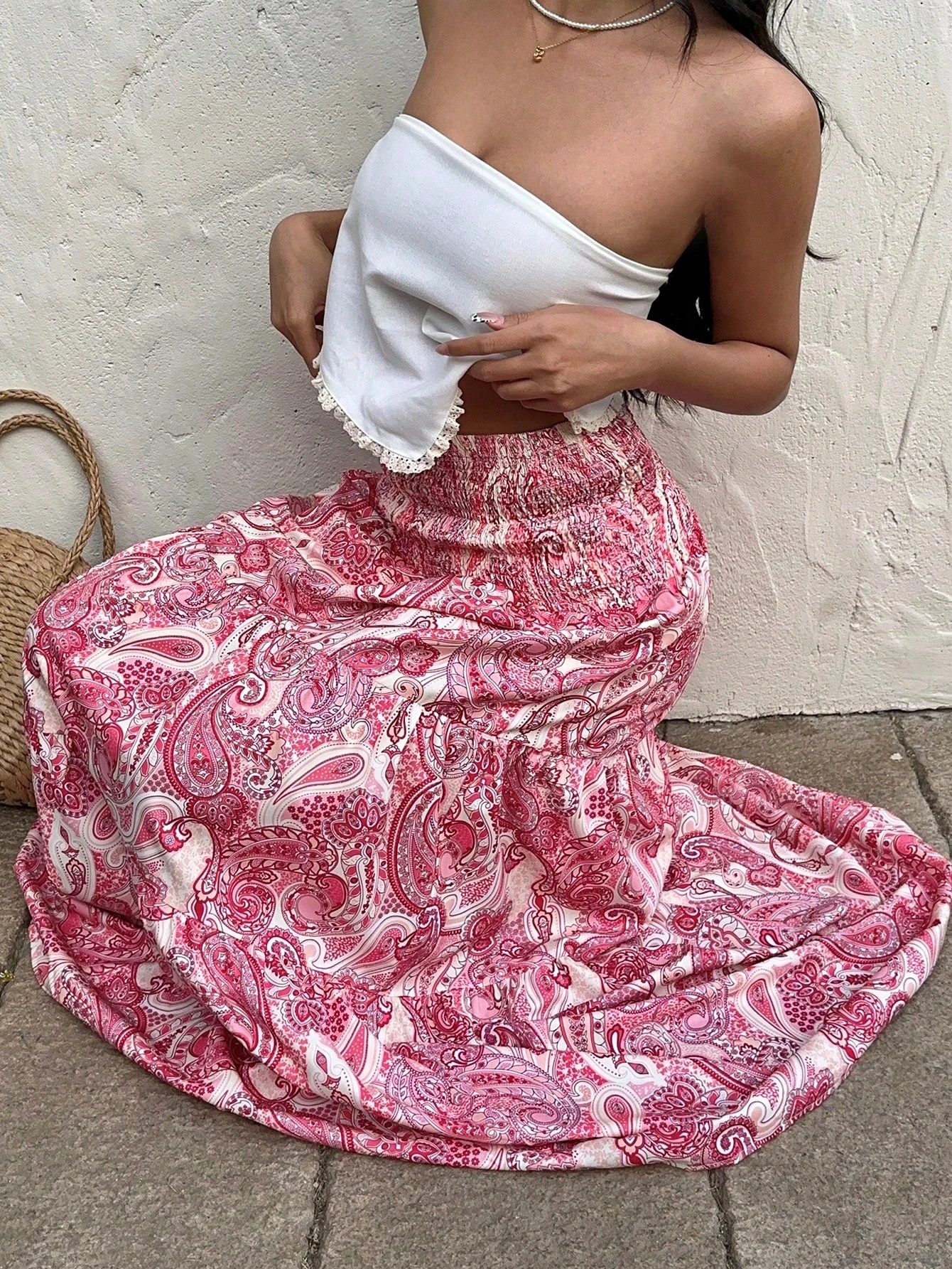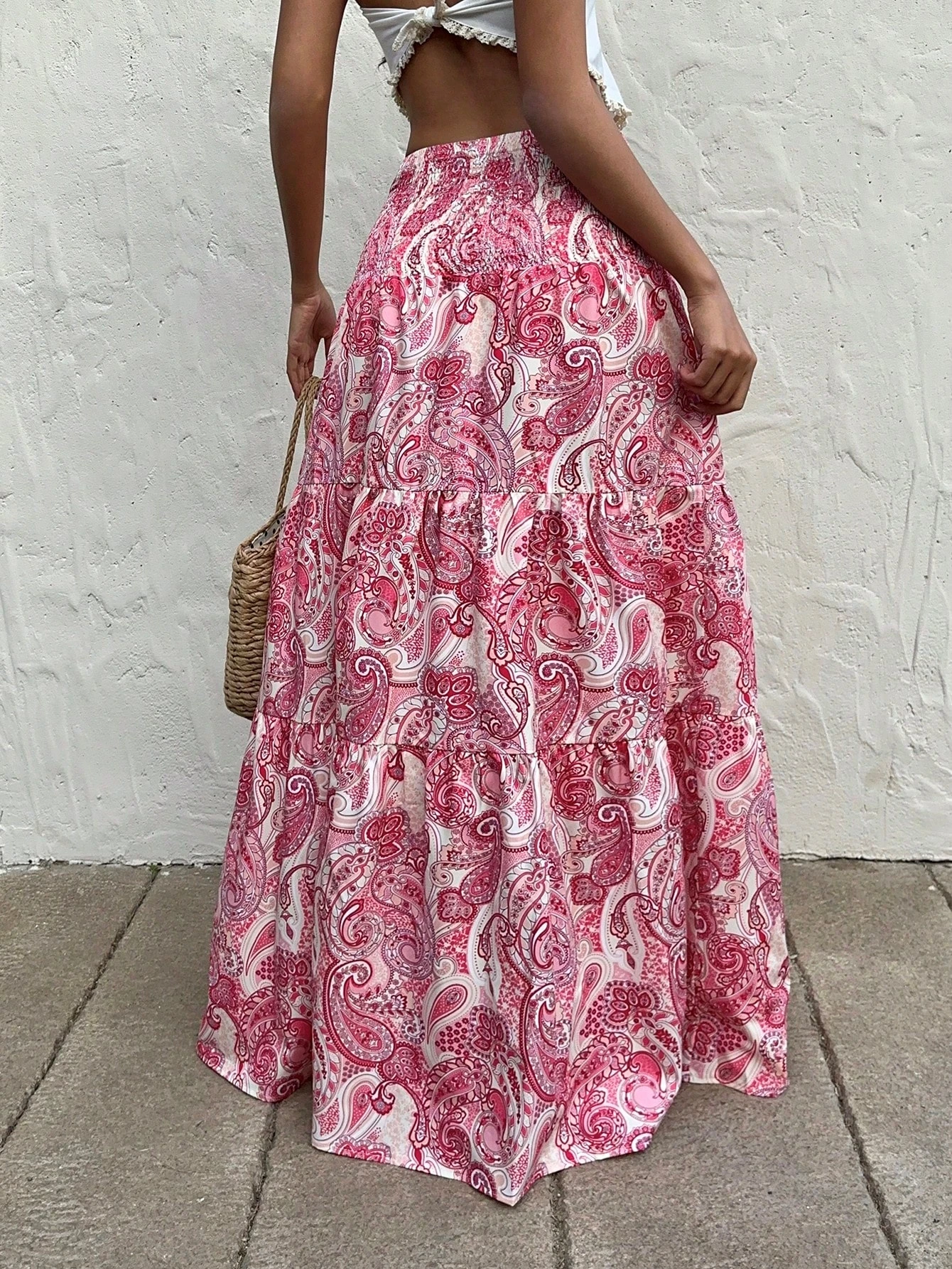 Nome Original/Estilo: Shirred Waist Maxi Skirt / Boho Print Skirt.
