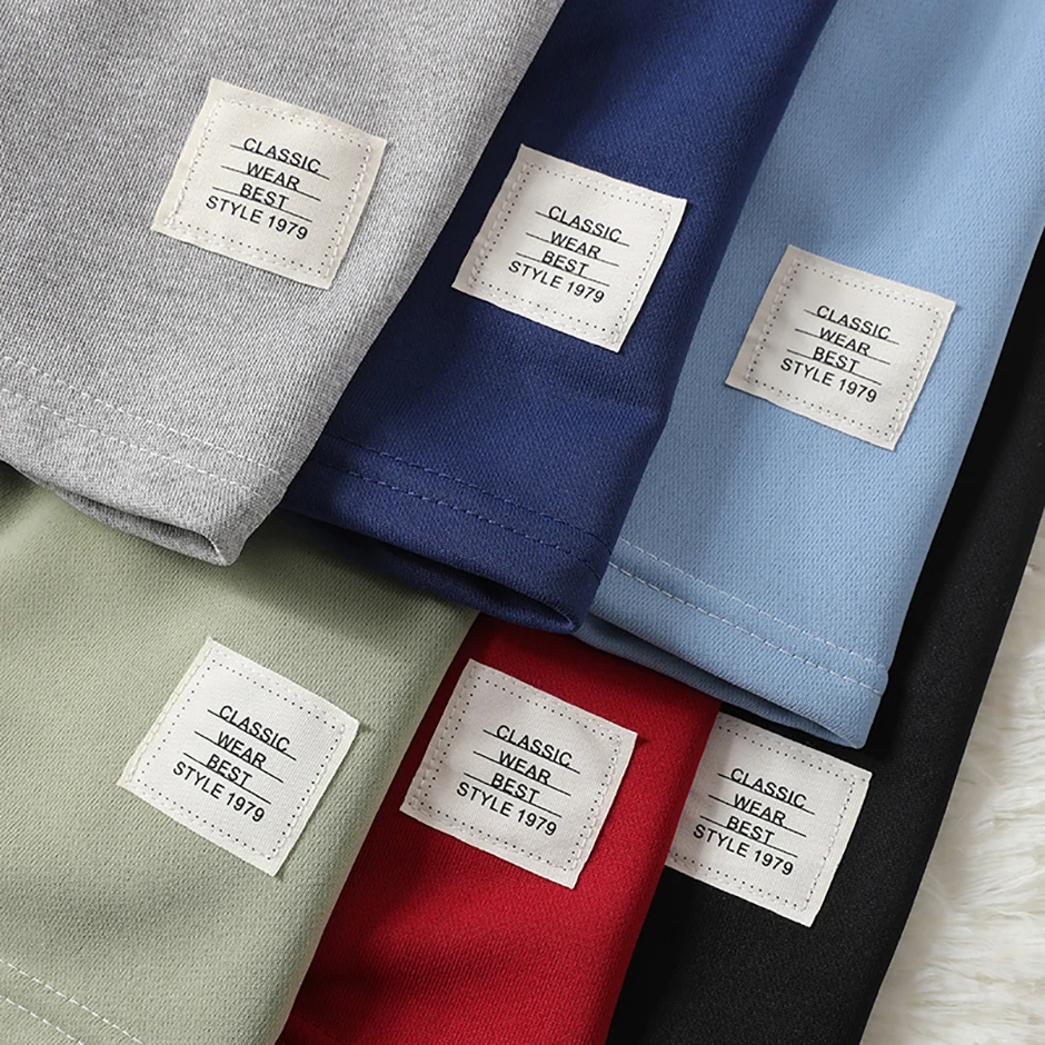 Detalhe Exclusivo: Cada short possui um pequeno patch retangular aplicado na lateral da perna (geralmente na barra), com um discreto texto vintage como "CLASSIC WEAR" ou "STYLE 1975", que confere um charme a mais e um visual mini-streetwear.