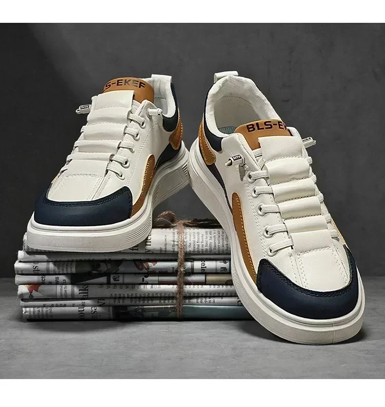 👟 Tênis Casual Masculino Bicolor Branco, Caramelo e Azul – Estilo Street Fashion