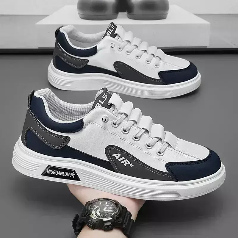 ✅ Design sofisticado e urbano: com um visual contemporâneo, o modelo mistura tons de branco, azul-marinho e caramelo, criando um contraste elegante e versátil.