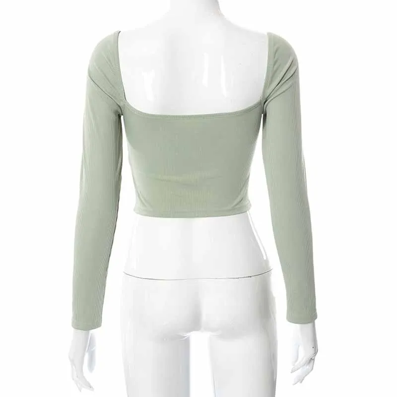 Modelagem: Cropped ajustado ao corpo, com mangas longas e confortáveis.