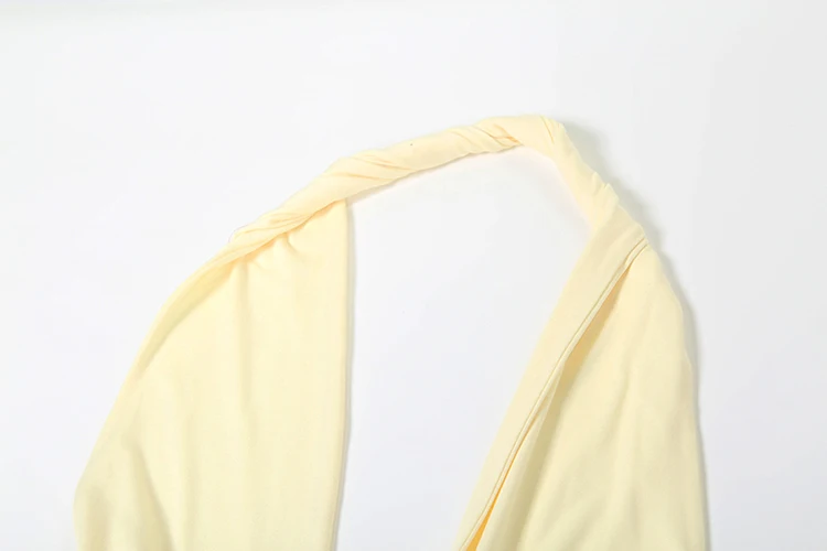 Decote Plunging V-Neck: O decote em V extremamente profundo e a amarração frontal são o ponto focal, criando um visual impactante e incrivelmente sensual.